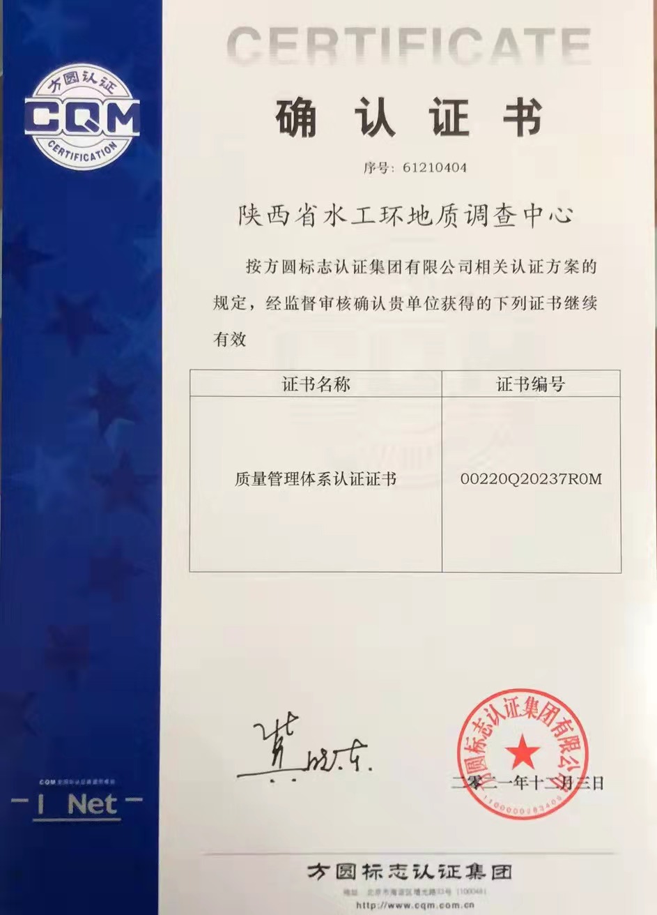 審核過程中,立足中心質(zhì)量管理體系文件,審核組通過談話、資料查閱、現(xiàn)場取證(陜西省安康地區(qū)土地質(zhì)量調(diào)查評價及綜合研究項目、陜西省渭北巖溶水資源環(huán)境調(diào)查評價項目、活動斷裂及強震對西安城市地下空間開發(fā)和影響及防控對策研究項目)等手段,對中心質(zhì)量管理體系運行情況進行了全面細致的檢查。